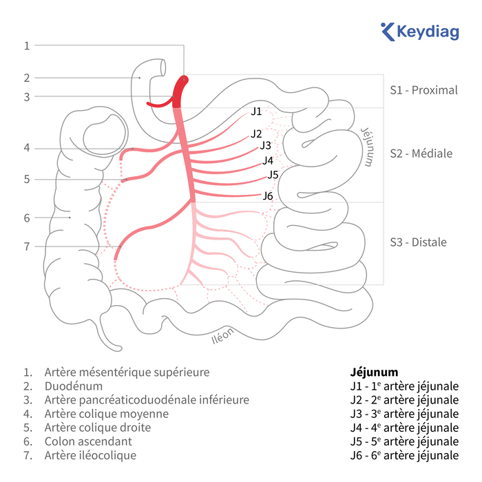 - Anatomie de l’artère mésentérique avec ses branches principales.