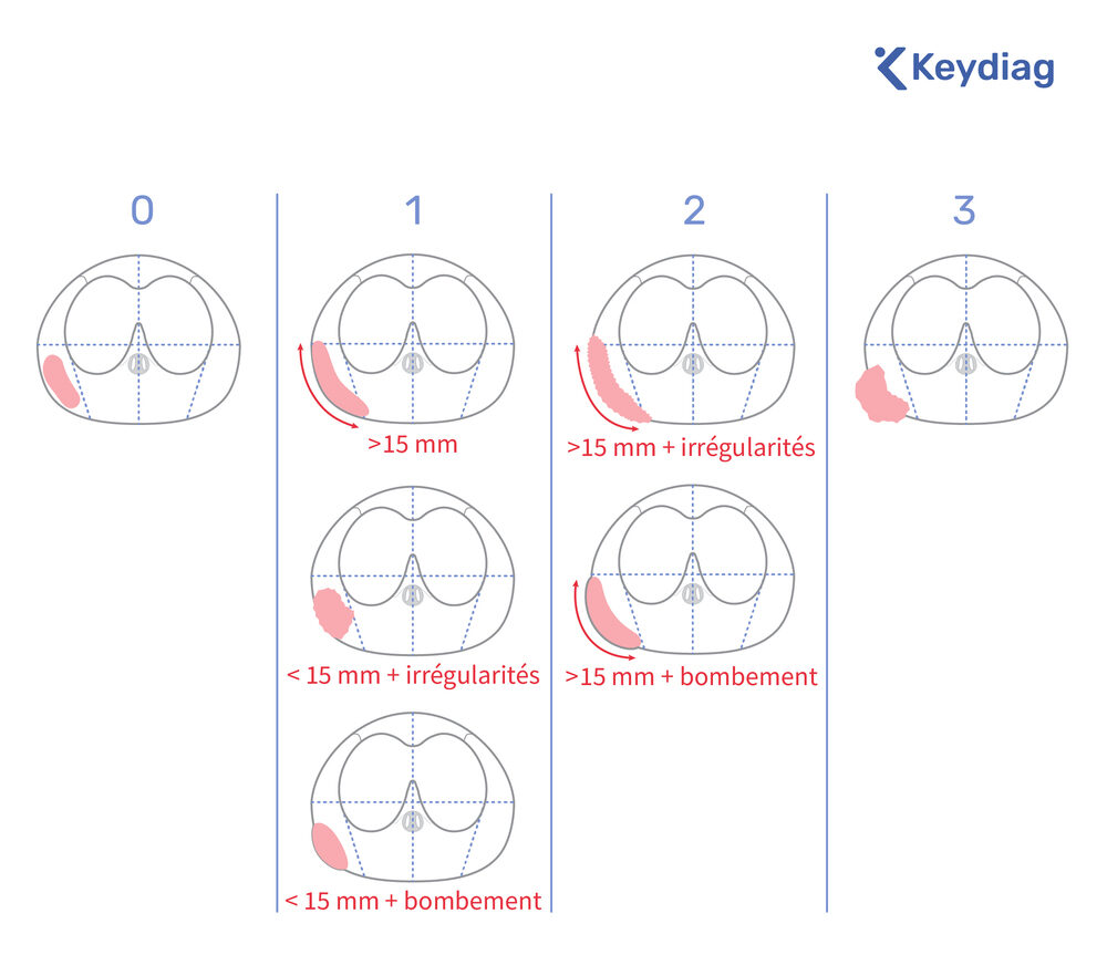 Ce grade évalue le risque d’extension de la lésion tumorale au-delà de la capsule prostatique.